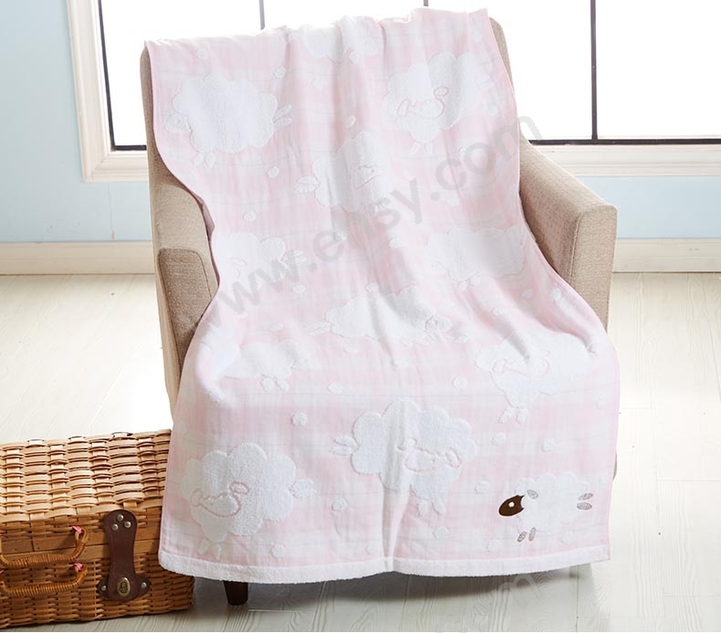 金號/KINGSHOR 純棉浴巾,G3757WH 335g 140×70cm 吸水雙層無捻紗布喜羊羊可愛卡通浴巾 售賣規(guī)格:1條