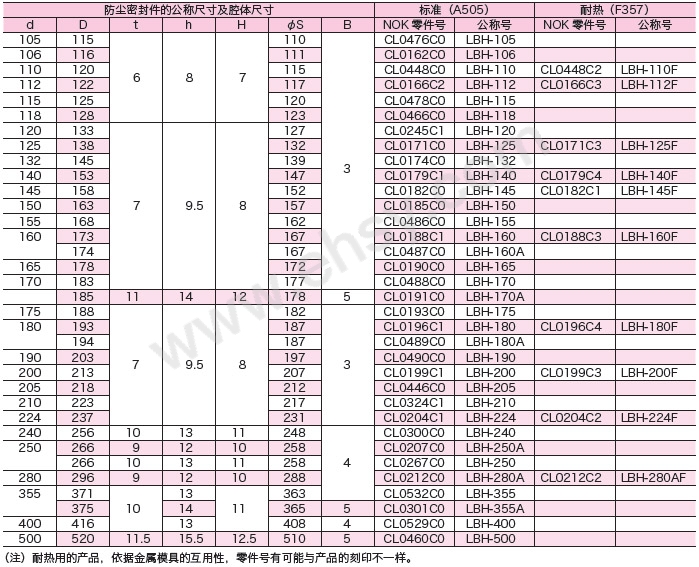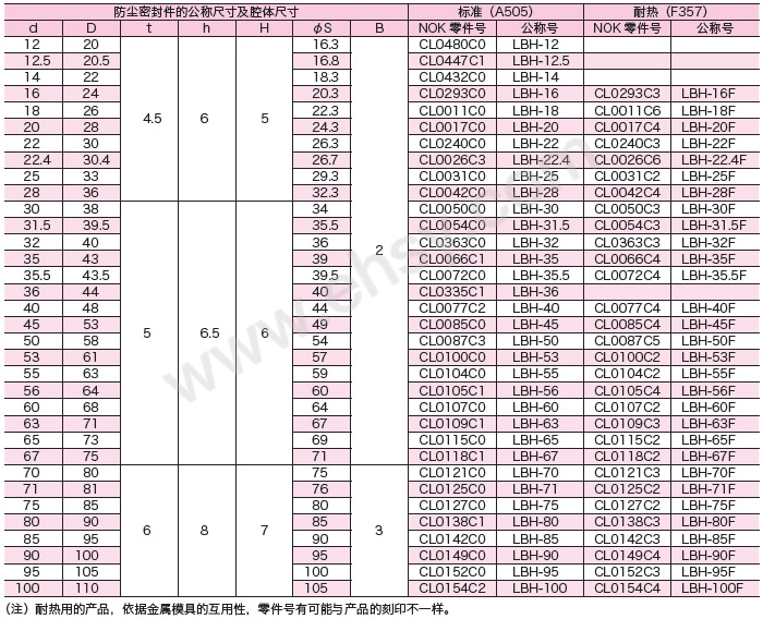 LBH防塵密封是一種雙作用密封,兼具密封與防塵作用,使用的丁腈橡膠和氟橡膠材料,可以保證廣泛的溫度使用范圍,廣泛應(yīng)用于挖掘機(jī)、推土機(jī)、平路機(jī)、裝載機(jī)、運(yùn)輸車、鏟車、沖壓機(jī)、切割機(jī)、折彎機(jī)、注塑機(jī)、液壓設(shè)備。為避免防塵唇口損壞,在安裝時(shí)要采取措施避開銳邊。