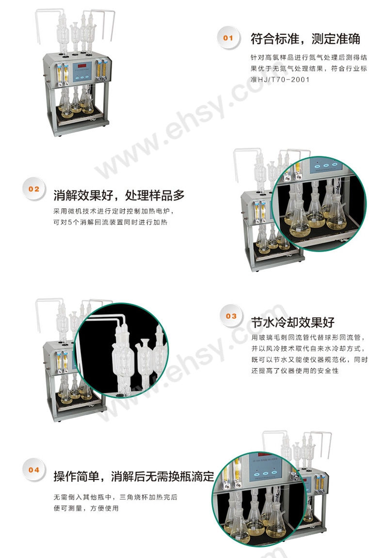 • 2、采用微機技術(shù)進行定時控制加熱電爐,可對5個消解回流裝置同時進行加熱
