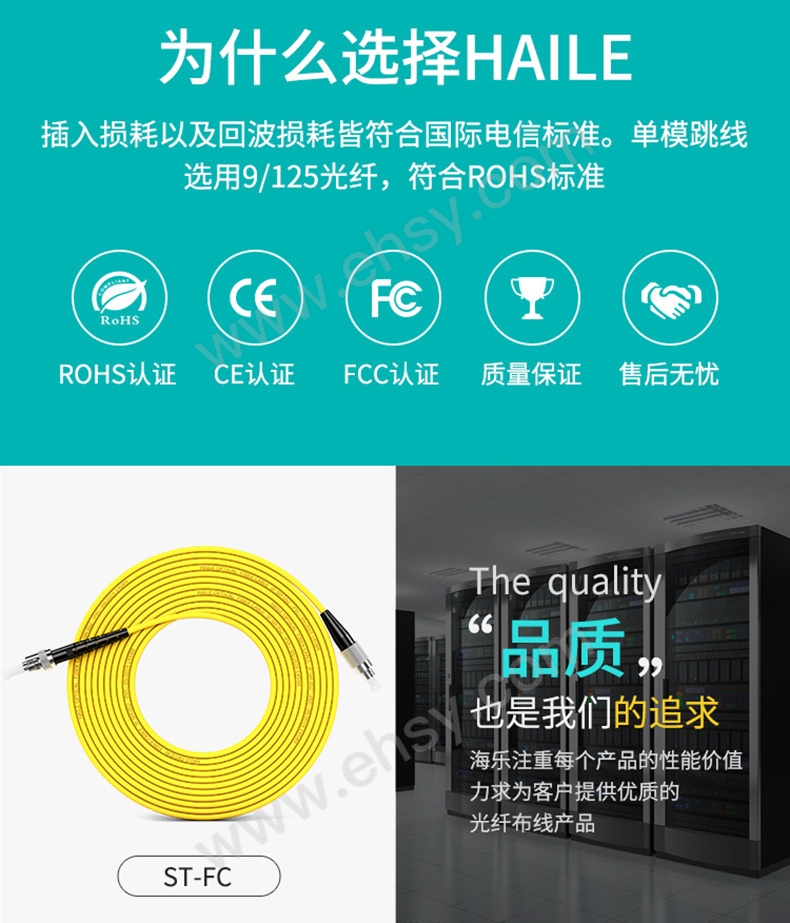 海樂 單模光纖跳線(FC-ST9/125)電信級單芯尾纖跳纖2米,HJ-1FC-ST-S2 售賣規(guī)格:1條