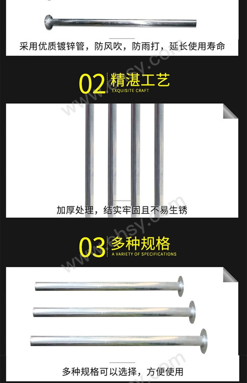 • 采用優(yōu)質(zhì)鍍鋅管,防風(fēng)吹,防雨打,延長使用壽命