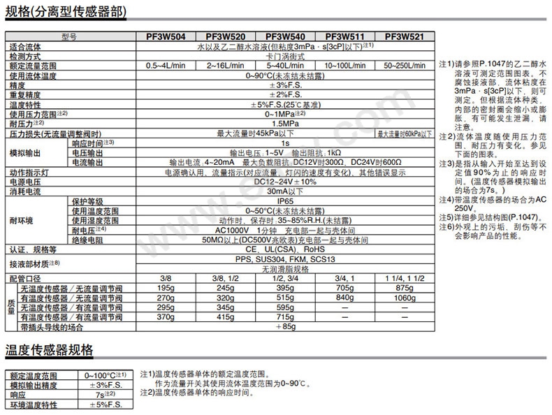 SMC 水用數(shù)字式流量開關(guān),PF3W520-04-2N 分離型傳感器部 售賣規(guī)格:1個