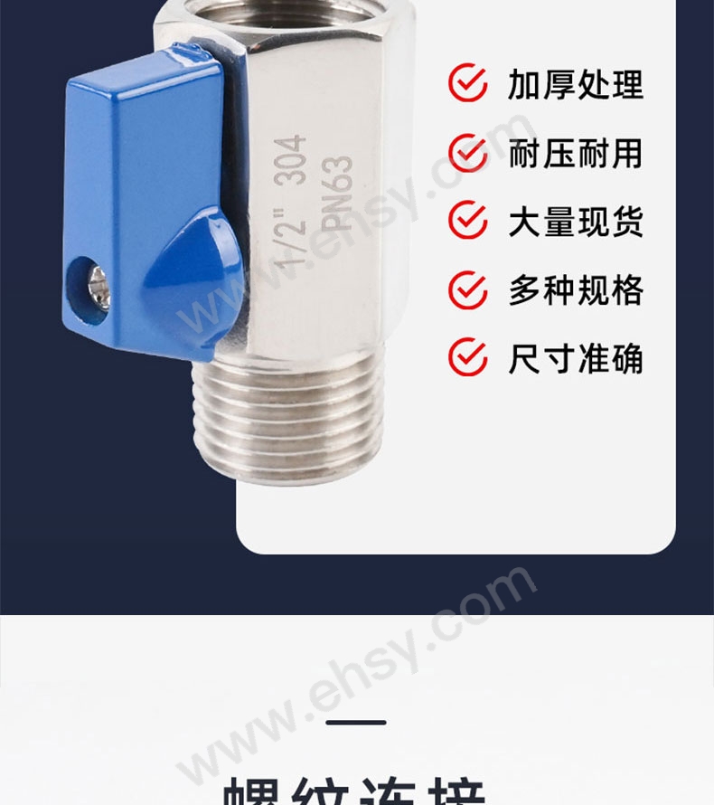 謙華智科 304不銹鋼PN63型迷你小球閥手動閥門開關(guān),內(nèi)外絲螺紋VAL-6,內(nèi)螺紋6分,外螺紋6分 售賣規(guī)格:1個