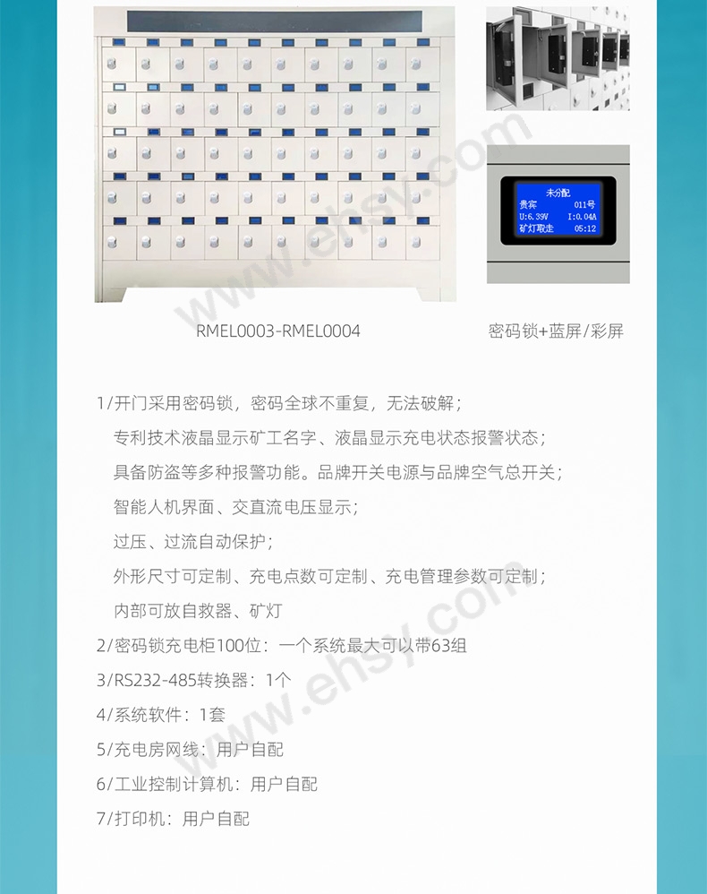 弗瑞奔/FreeBin 智能礦燈充電架,RMEL0003 100位,2150*560*1952,密碼鎖,液顯(藍(lán)屏) 售賣規(guī)格:1個(gè)