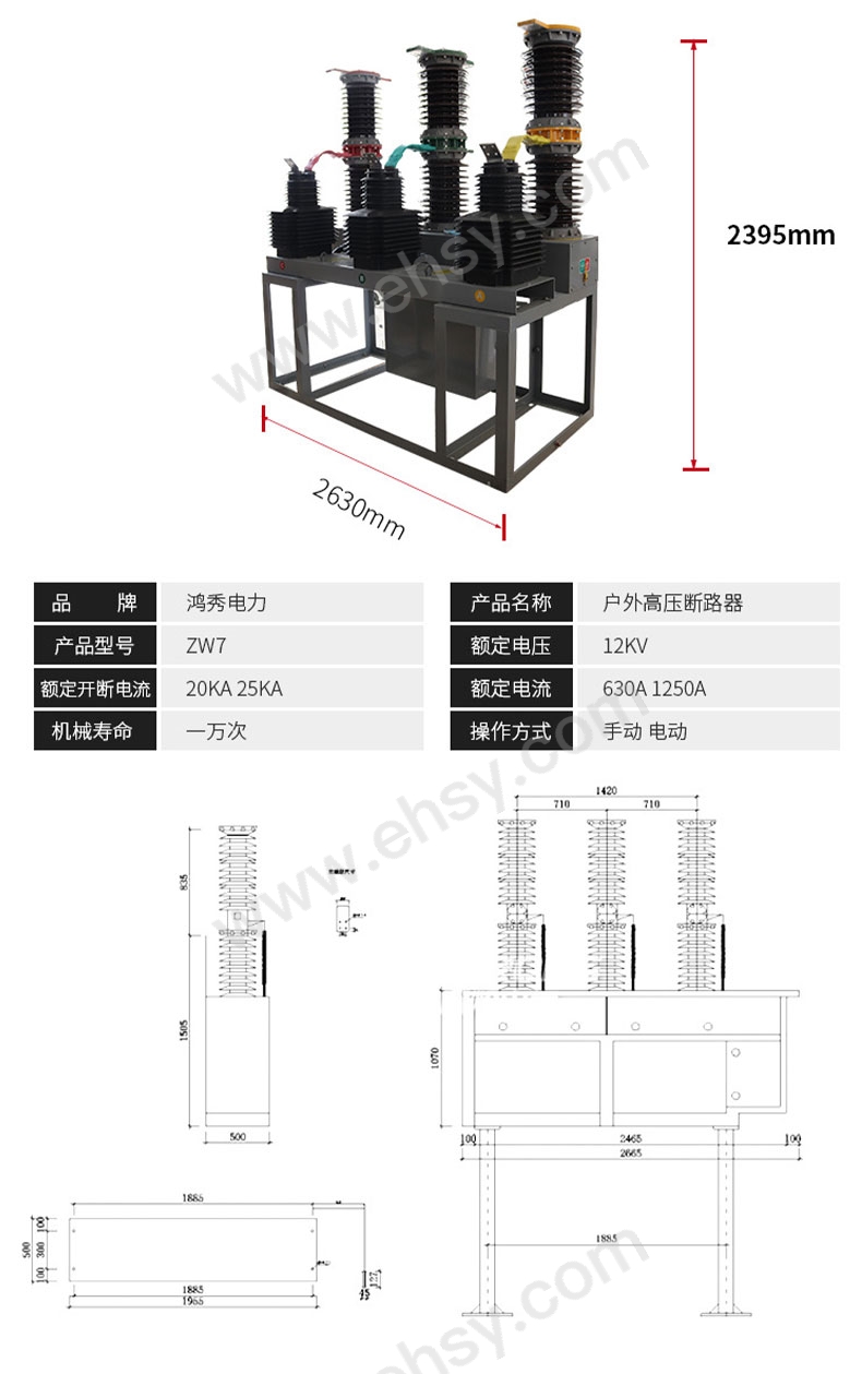 鴻秀電力 戶外高壓真空斷路器,ZW7-40.5/1250-31.5 售賣規(guī)格:1臺(tái)