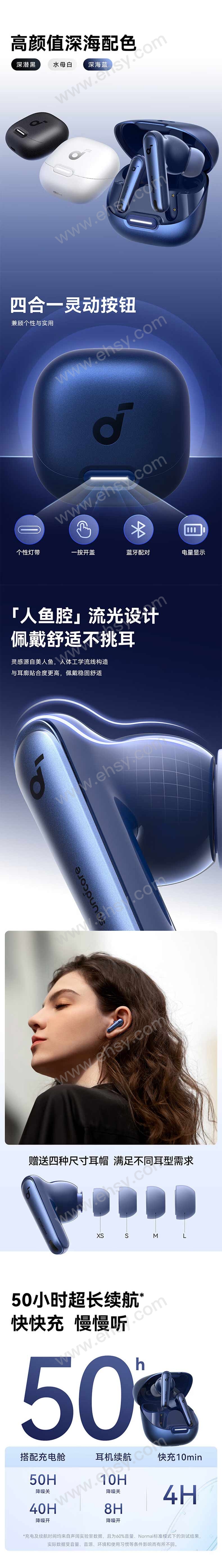 聲闊/Soundcore 藍牙耳機,985 藍 降噪艙 Liberty 4 NC 降噪真無線TWS入耳式藍牙耳機適用蘋果/華為/小米手機 售賣規(guī)格:1副