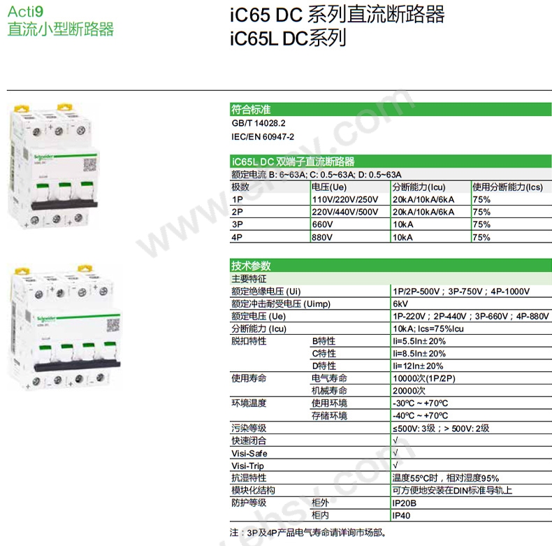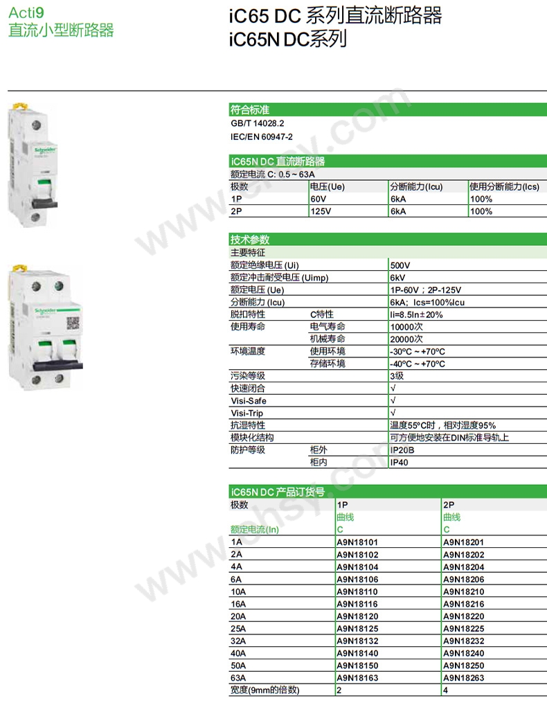 施耐德 直流微型斷路器,A9N18240 iC65N DC 2P C40A 售賣規(guī)格:1個(gè)