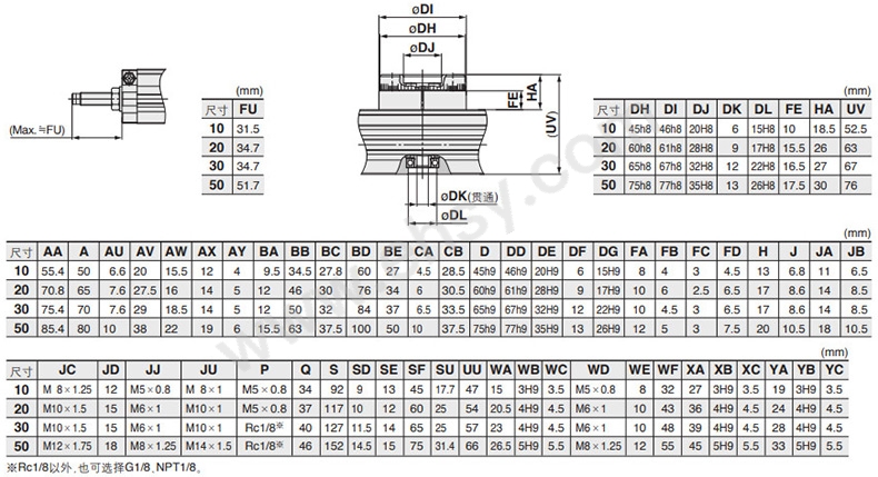 接管口徑(inch)Rc1/8