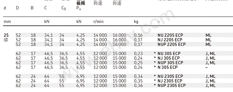 • 圓柱滾子軸承能承受較大的徑向負(fù)荷并適于在高速運(yùn)轉(zhuǎn)場(chǎng)合使用。