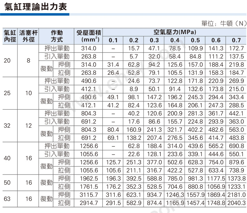 • 工作中負載有變化時,應選用輸出力充裕的氣缸;