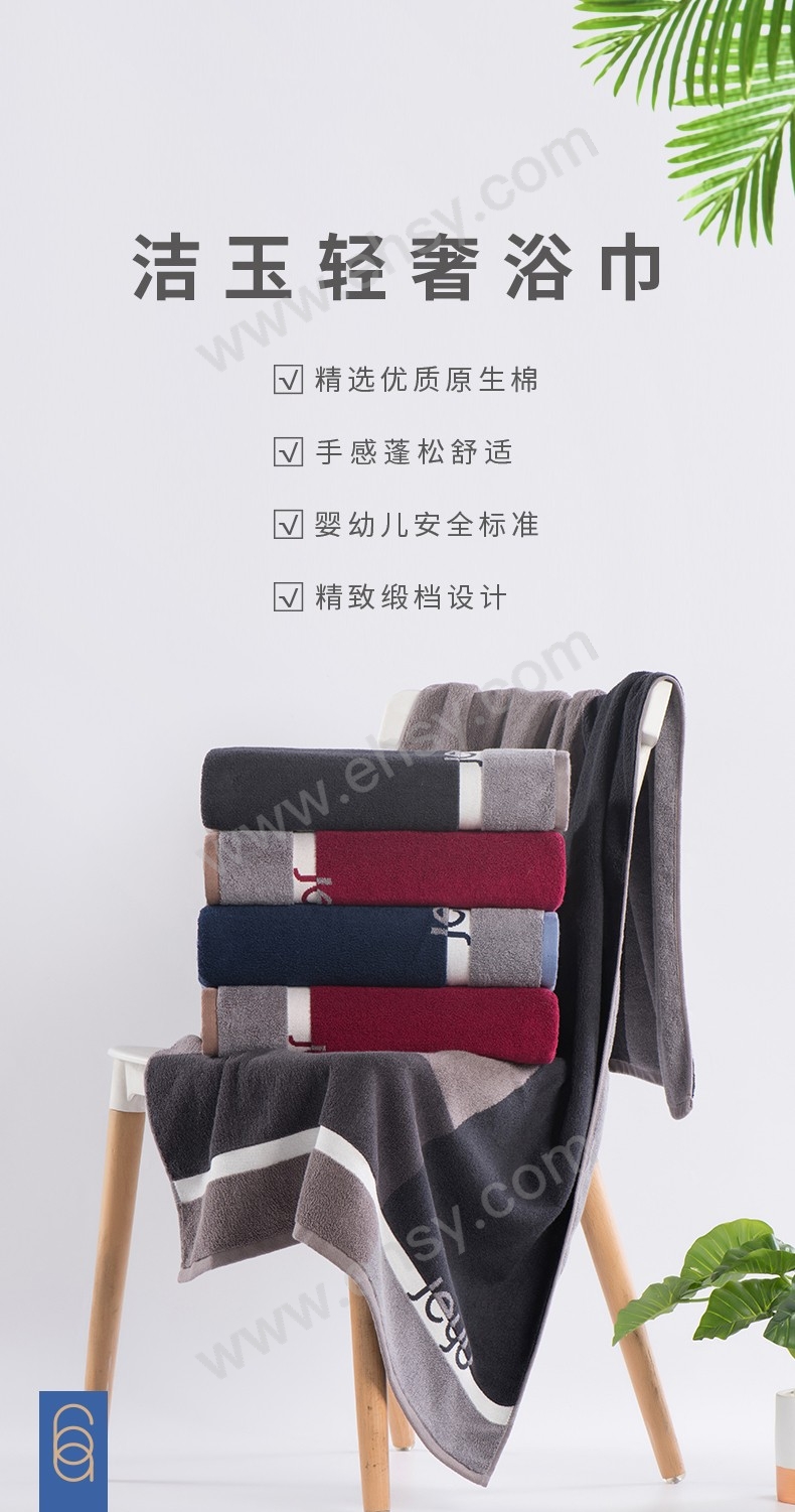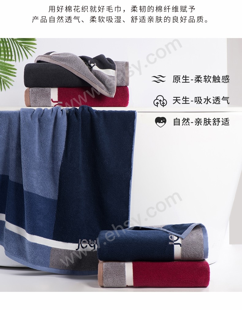 潔玉 輕奢浴巾,JQ3006B 純棉70cm×140cm,410g,藍(lán)/灰/紅(顏色隨機(jī)發(fā)貨) 售賣規(guī)格:1條