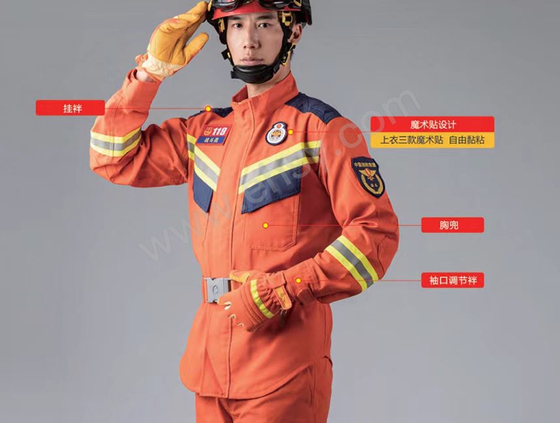 • 用于建筑倒塌、狹窄空間及攀登等救援現(xiàn)場的身體防護(hù)。具備阻燃、耐磨、輕便、抗拉力強(qiáng)、顏色及標(biāo)識(shí)醒目等性能。搶險(xiǎn)救援服是消防員在進(jìn)行搶險(xiǎn)救援作業(yè)時(shí)穿著的專用防護(hù)服。