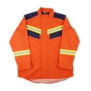 2、款式:L碼,上下分體式結(jié)構(gòu),襯衫式設(shè)計(jì),腳口和袖口設(shè)有魔術(shù)貼,易于收緊,整體協(xié)調(diào),便于靴子和手套穿脫;肩、肘、臀、膝蓋、襠部外貼外層面料襯芳綸氈,加厚處理增加耐磨性;小立領(lǐng)設(shè)計(jì),拉鏈可拉至領(lǐng)口上方,外加門排和護(hù)領(lǐng),保證頸部防護(hù)的同時(shí),穿著舒適,不影響頭部活動(dòng);前胸反光標(biāo)志帶上方左胸為電臺(tái)掛袢,右胸可用魔術(shù)貼粘貼標(biāo)記,反光標(biāo)志帶下方兩個(gè)有蓋貼袋,可放置輕便工具;后背折裥設(shè)計(jì),增加手臂伸展活動(dòng)量,穿著舒適;腋下為褶皺式透氣口;膝蓋兩側(cè)收折裥,使膝蓋彎曲,符合人體工程學(xué);褲腰設(shè)置防滑腰襯,兩側(cè)裝橡筋收緊,褲門襟用褲鉤和拉鏈閉合。褲腰下兩個(gè)斜插袋,放置輕便物品,腰兩側(cè)調(diào)節(jié)扣設(shè)計(jì),不穿腰帶也可方便地調(diào)節(jié)腰部大小,且美觀大方。