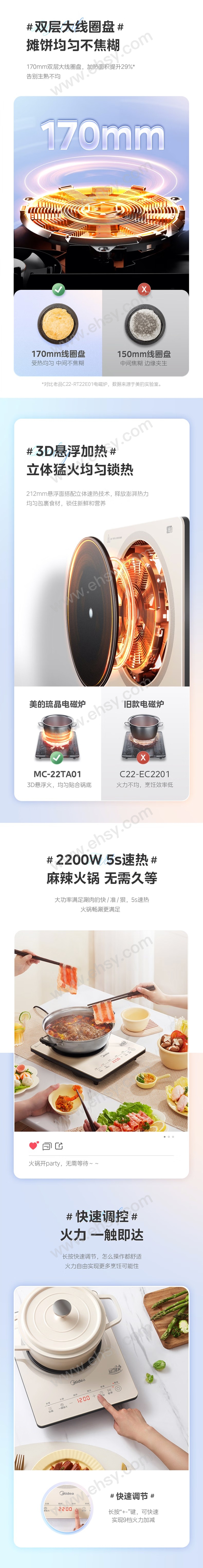 美的 電磁爐,22TA01 功率2200W 售賣規(guī)格:1臺